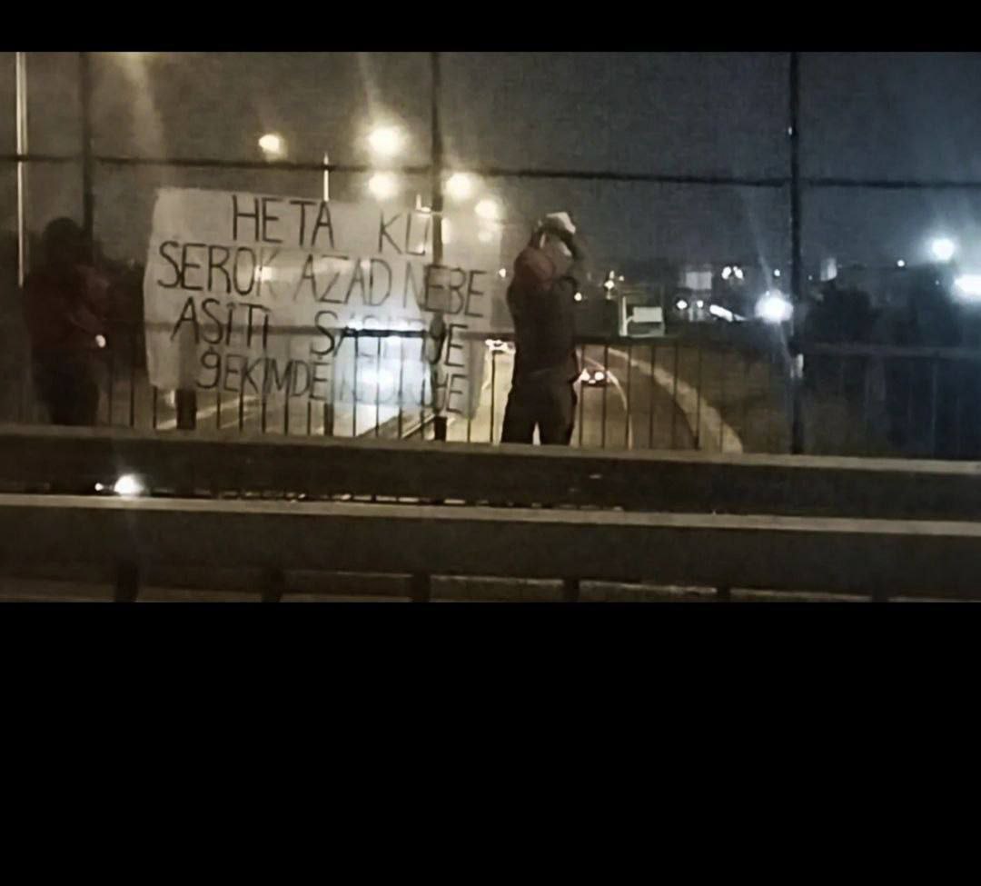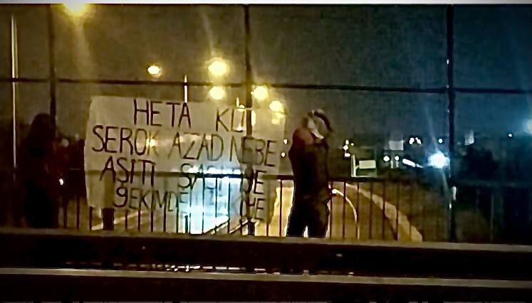 Yurtsever Gençlik İstanbul’un Esenyurt semtinde Önder Apo’ya yönelik 9 Ekim Uluslararası Komplosu’na dönük eylem gerçekleştirerek “Heta Serokati Azad Nebe Aşitî Şaştiye” sloganının olduğu büyük bir pankartı ana yolun olduğu yaya geçidine astı.