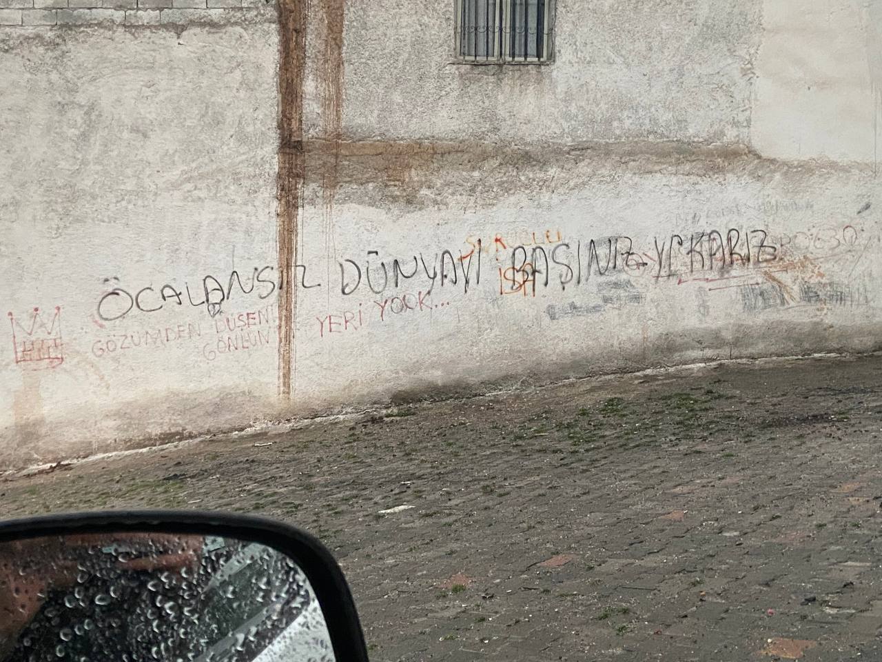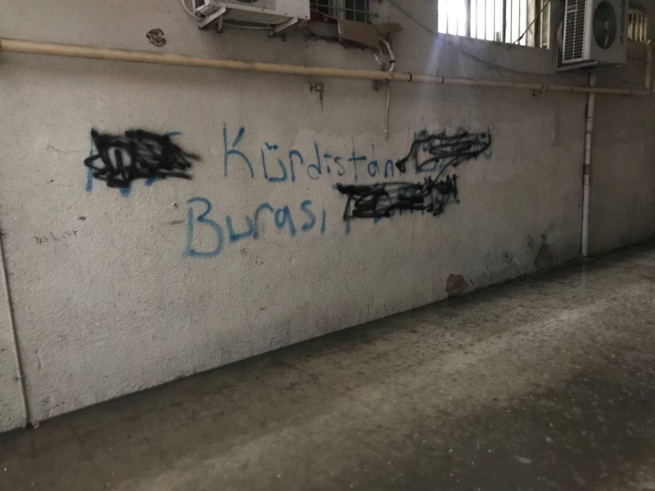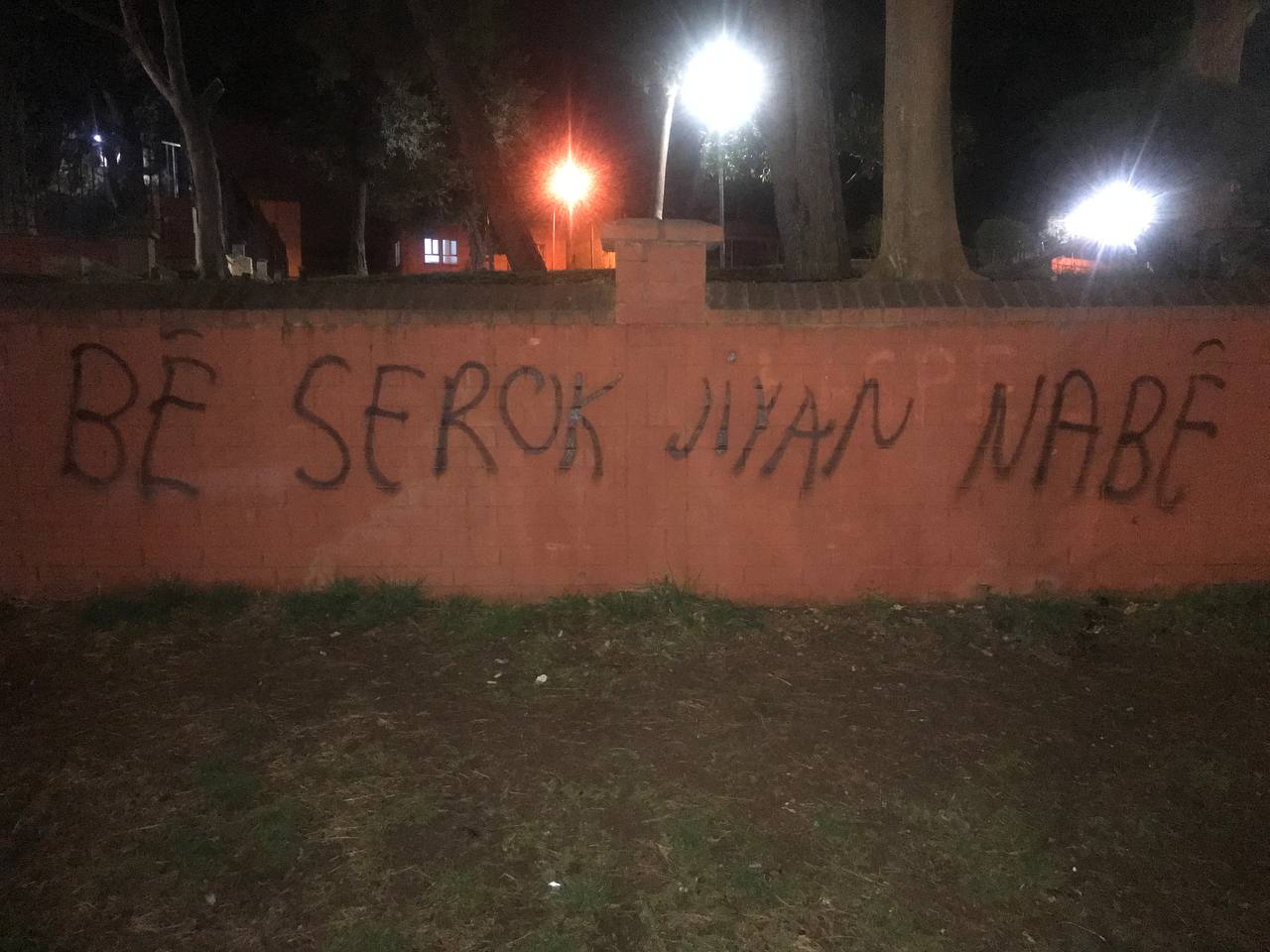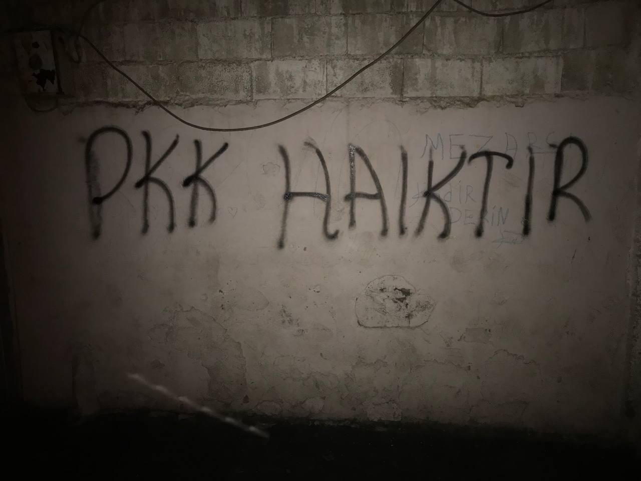 RIHA – Yurtsever gençlik Riha (Urfa) Bahçelievler Mahallesi’nde Önder Apo üzerindeki tecride ve gerilla direnişine dikkat çekmek için duvarlara yazılama gerçekleştirdi. Gençler yazılama yaparak gelişen gerilla direnişini selamladı.