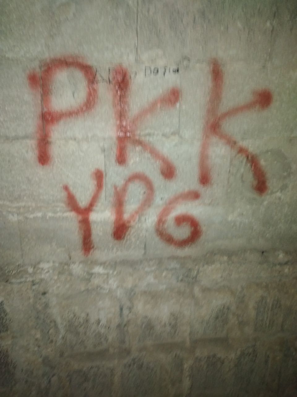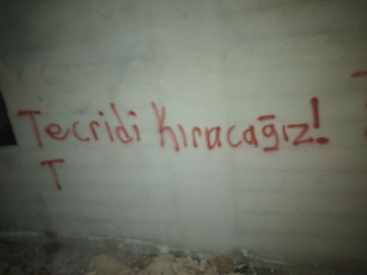 RIHA – Yurtsever Gençlik Riha’da tecride dikkat çekmek amacıyla yazılama gerçekleştirdi.