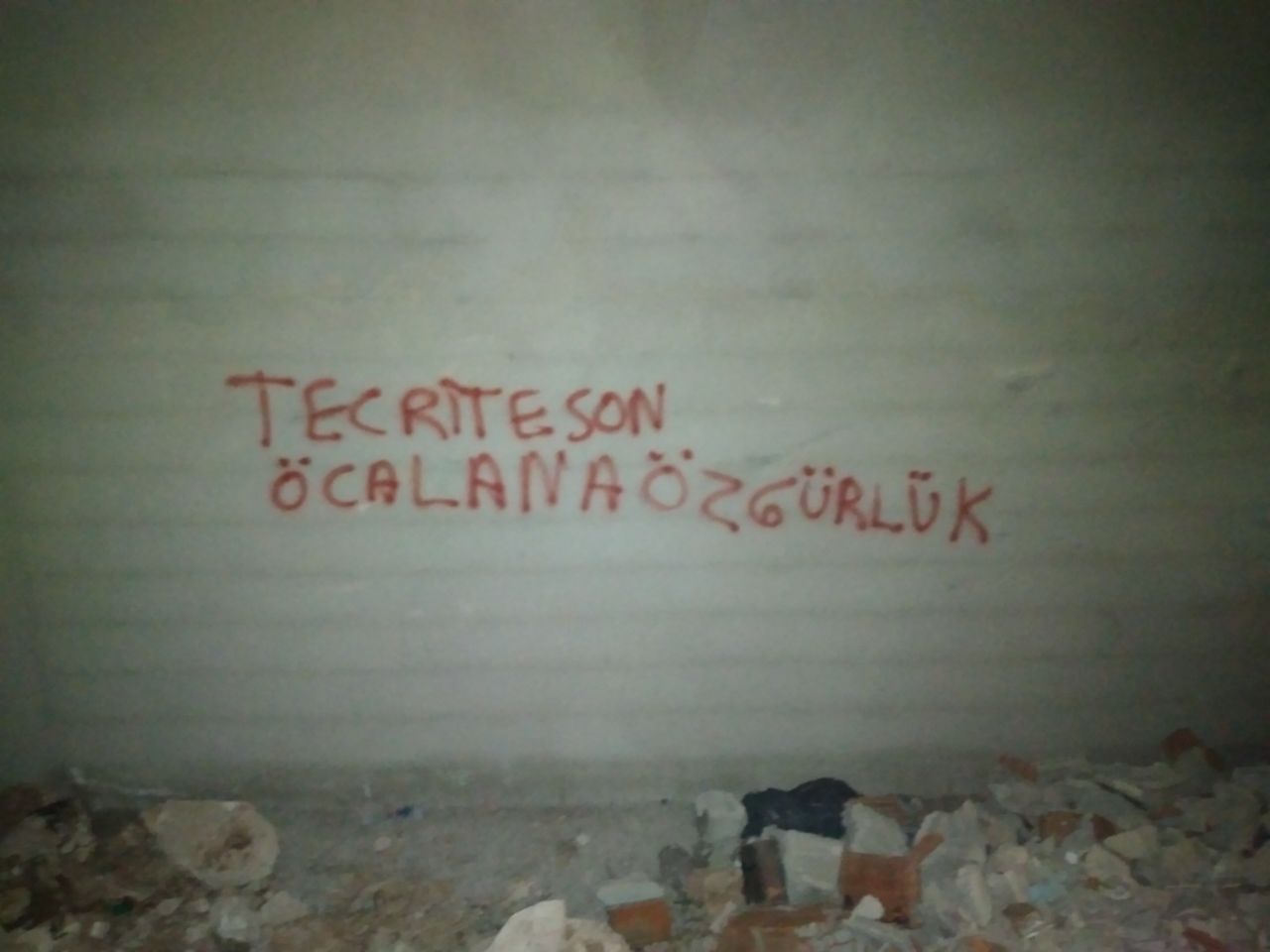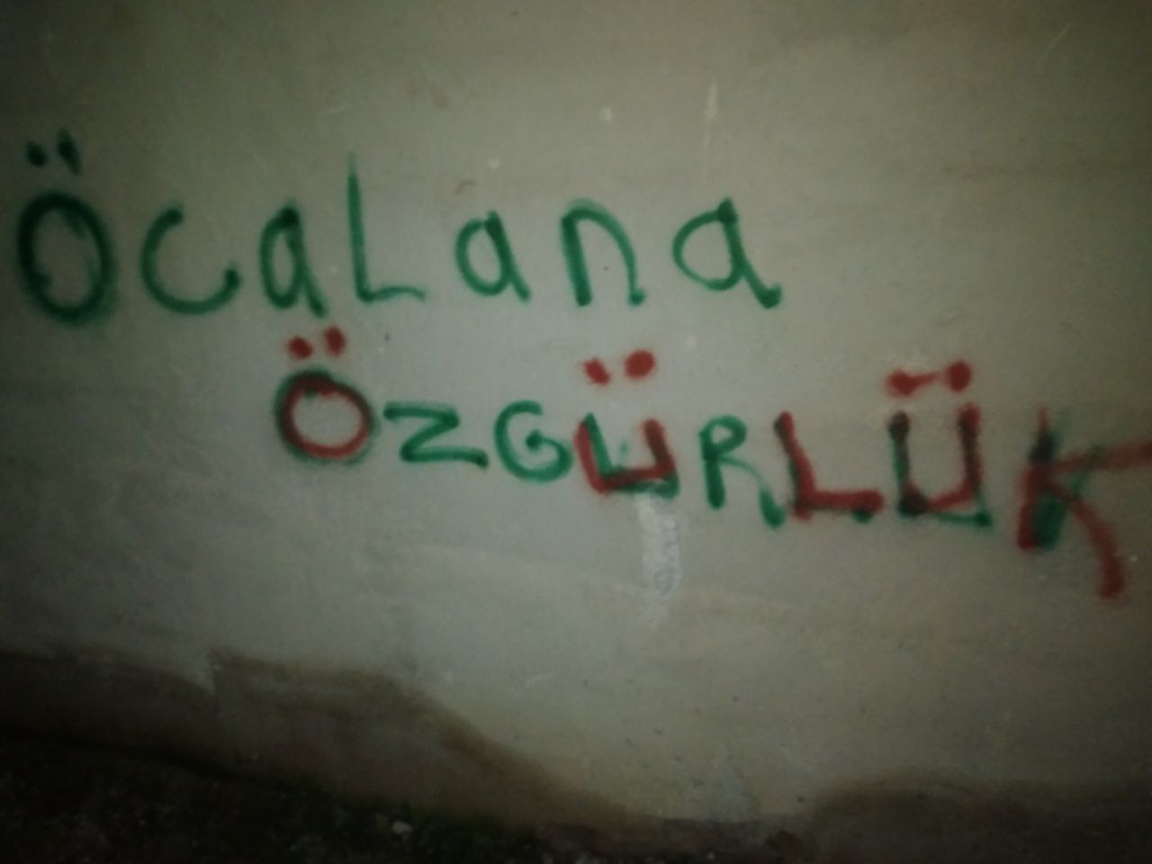 Yurtsever Gençlik Riha Karakoyun ve Bahçelievler’de Önder Apo üzerindeki tecride dikkat çekmek amacıyla yazılama gerçekleştirdi.