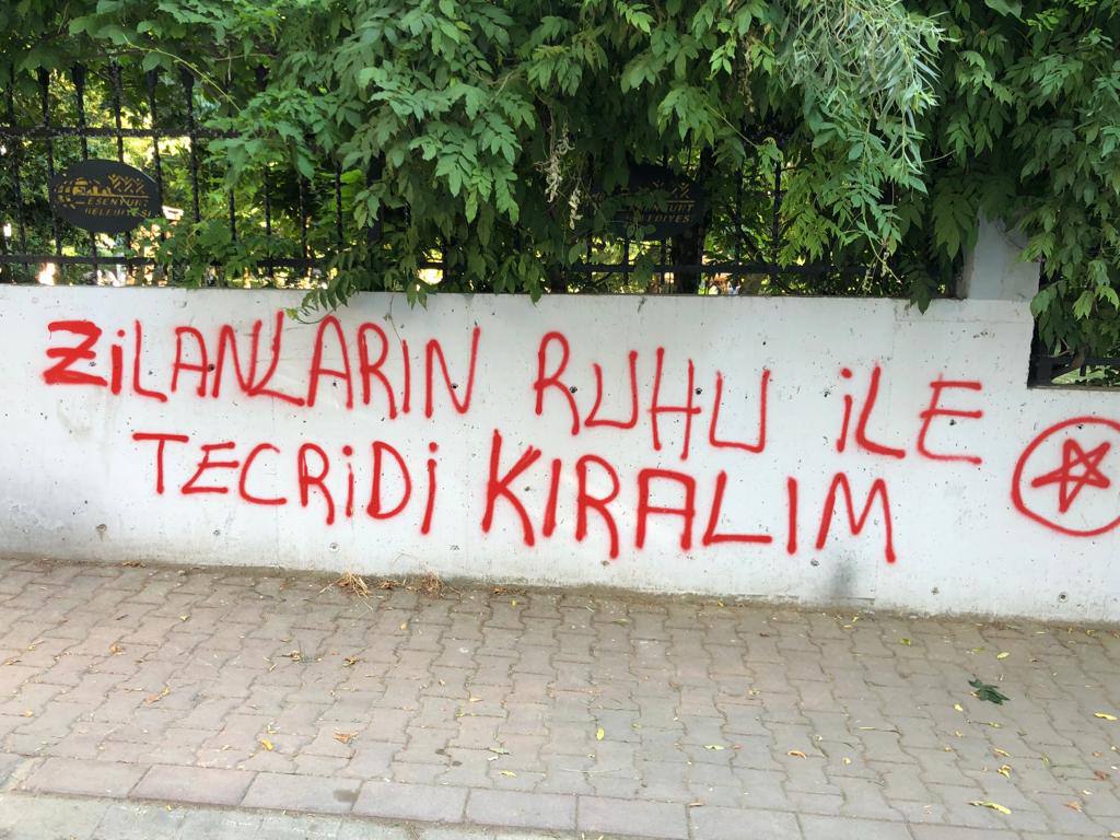 Yurtsever Gençlik İstanbul Esenyurt’ta Şehit Zilan’ı (Zeynep Kınacı) anmak için duvarlara yazılama yaptı. Yurtsever gençlik ” Zilanların ruhu ile tecridi kıralım” dedi.