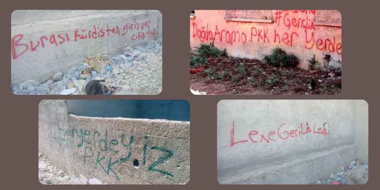RIHA –  Riha’da Yurtsever Gençlik tarafından Haliliye ilçesinde bağlı Süleymaniye ve  Ahmet Yesevi son durak mahallerinde yazılama çalışmaları yapıldı. Gençler duvarlara, ‘Selam Olsun Avaşîn, Dağda Arama PKK Her yerde, Her Bijî HPG, Gerîla Taca Çiya, Burası Kurdistan Giriş Var Çıkış Yok’ yazıları yazdılar. Yurtsever Gençlik çalışma ve eylemlerinin devam edeceğini belirtti.