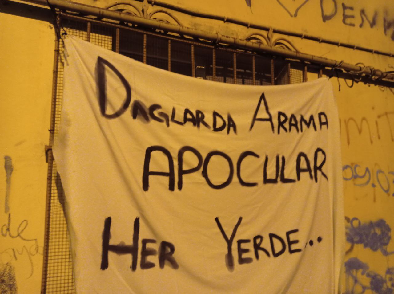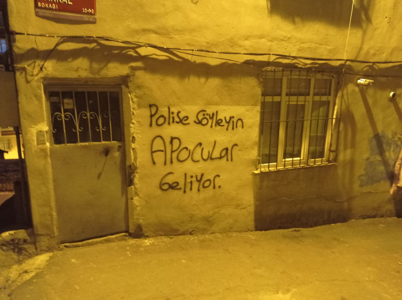 İstanbul Okmeydanın’da Yurtsever Gençlik “Dağlarda Arama APOCULAR her yerde” yazılı bir pankart asarak, yazılama çalışması gerçekleştirdiler. “Bijî Berxwedana Zapê”, “HPG’den Selam Var”, “PKK Burada”, “Polise Söyleyin Apocular Geliyor” yazılamaları yazan Yurtsever Gençlik eylemselliklerinin devam edeceğini duyurdu.