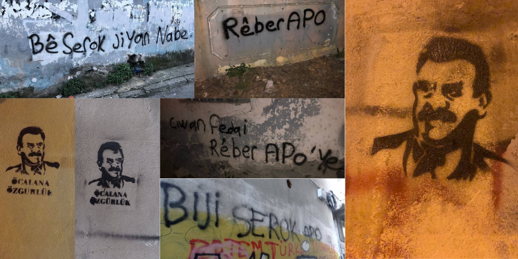 Gençlerin yaptıkları yazılamalarda, “Be Serok Jiyan Nabe”, “Ciwan fedaiyê Rêber Apo ne!”, Bijî Serok Apo” yazılamaları öne çıktı.