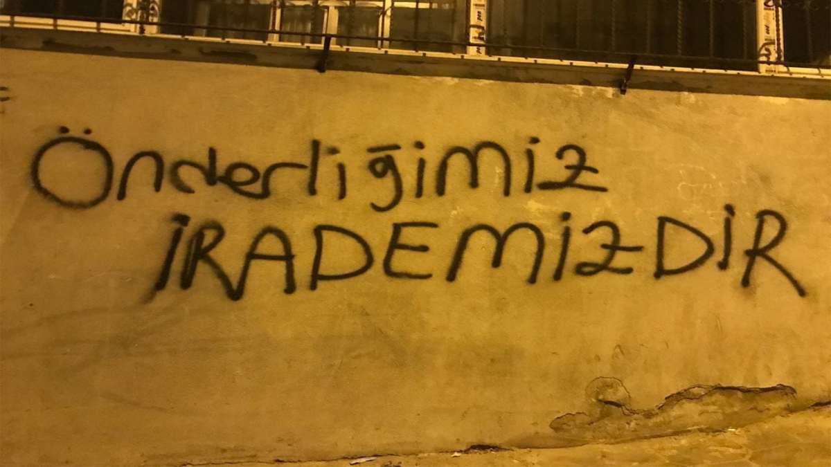 Gençlik, “Önderliğimiz İrademizdir”, “Açlık grevine ses ver”, “Be Serok Jiyan Nabê” yazılamaları yaptı.