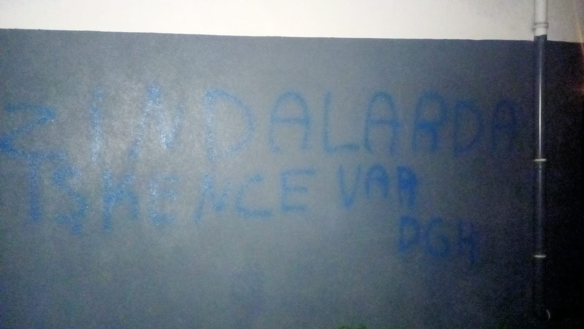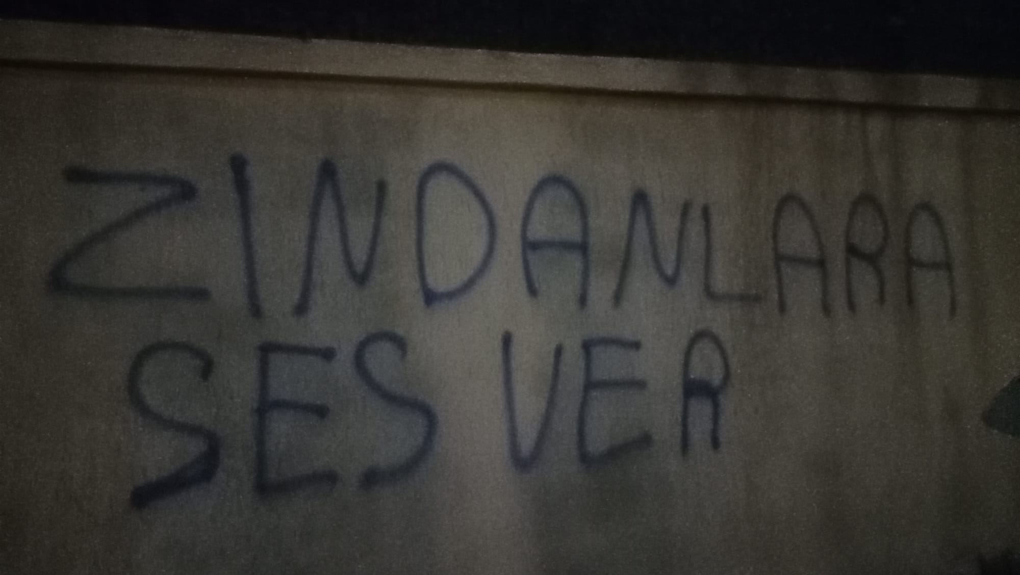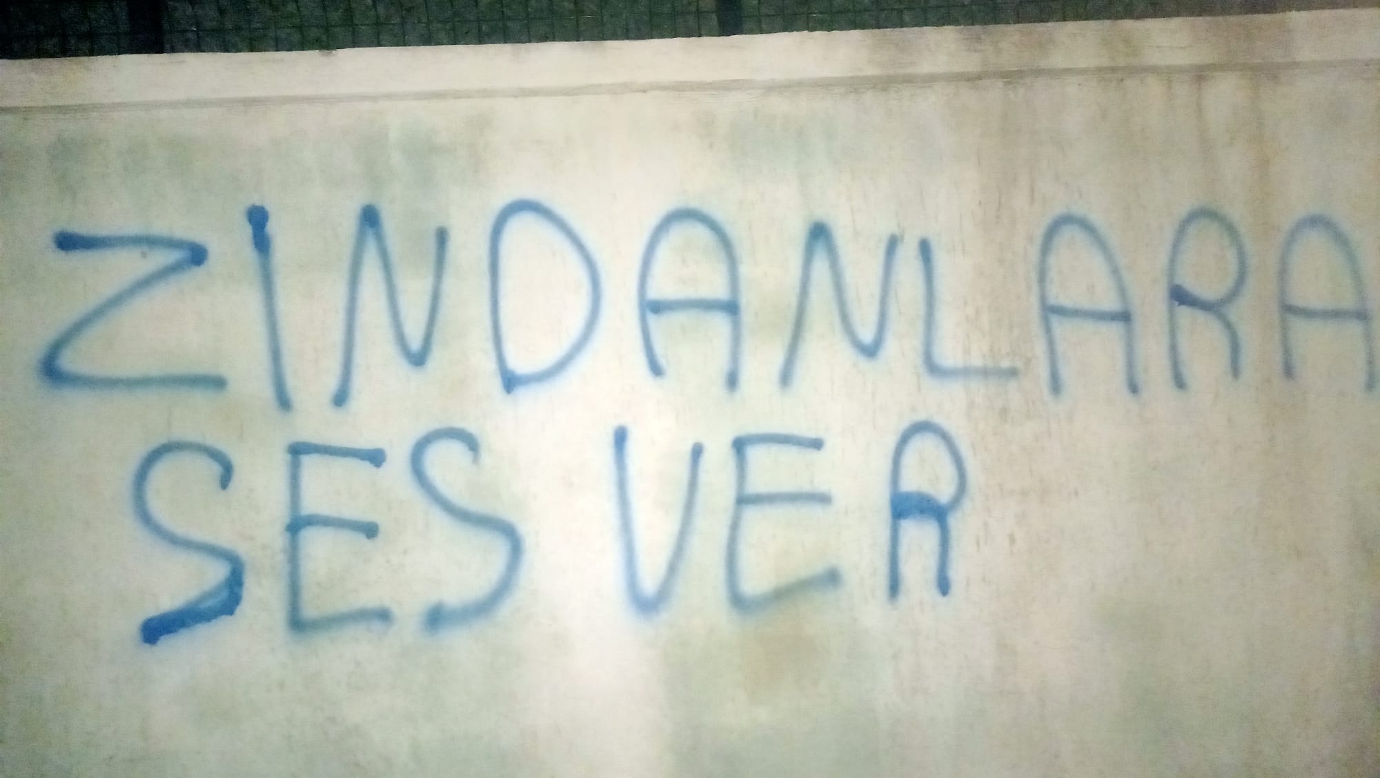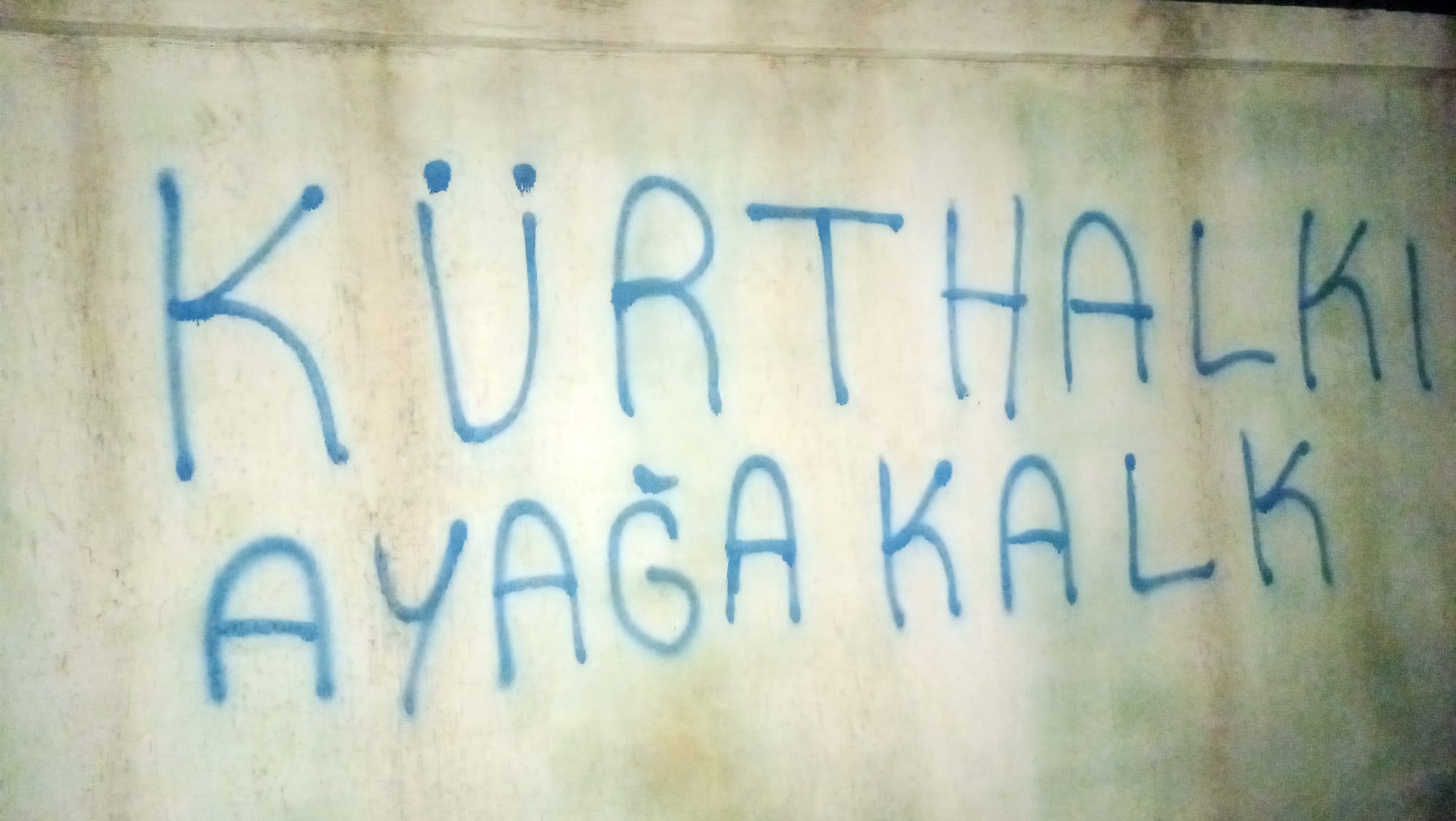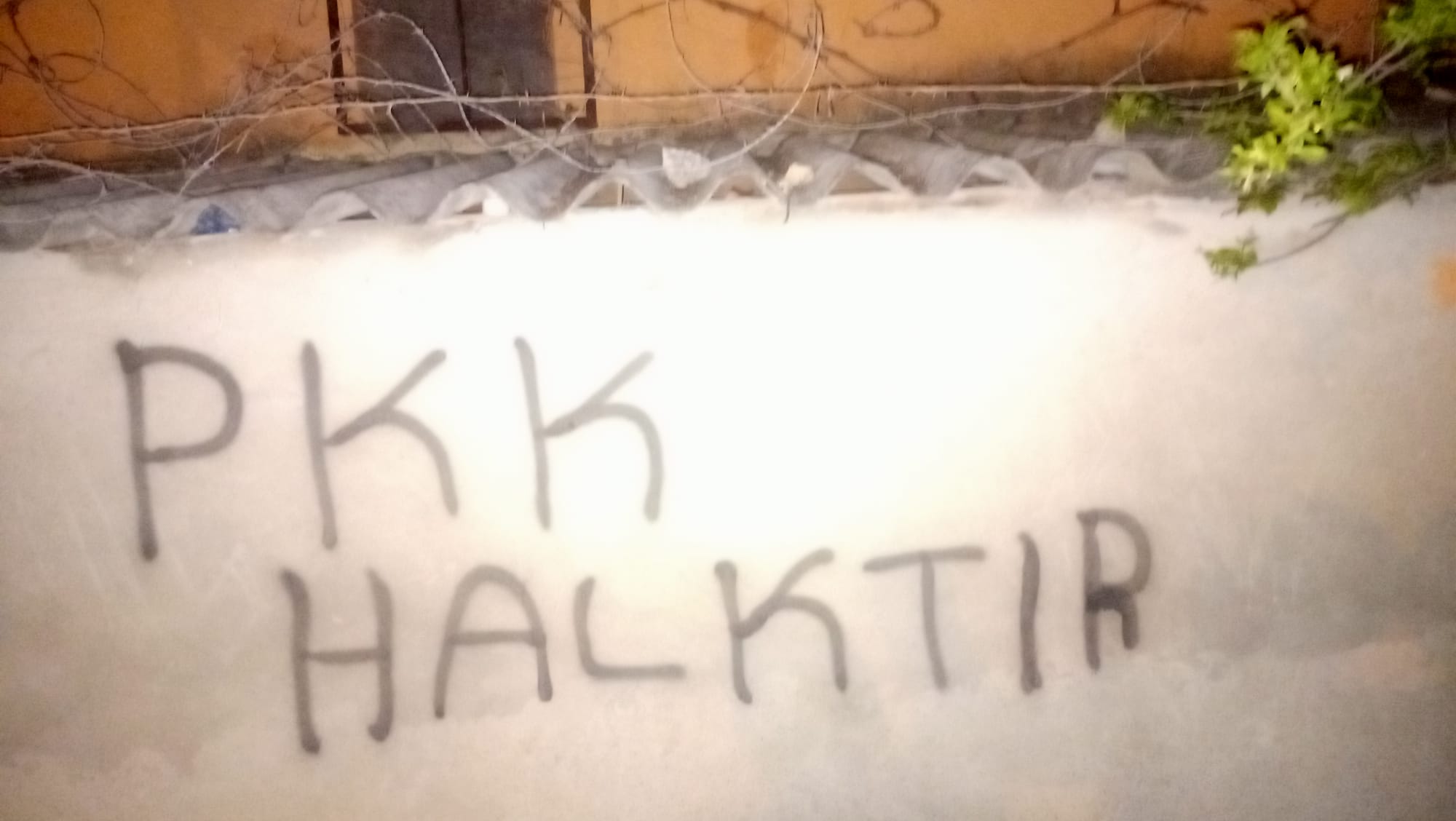 Yurtsever Gençlik tarafından yapılan çalışmada “PKK Halktır”, “Zindanlarda İşkence Var”, Zindanlara Ses Ver”, “Kürt Halkı Ayağa Kalk” yazılamaları öne çıktı.
