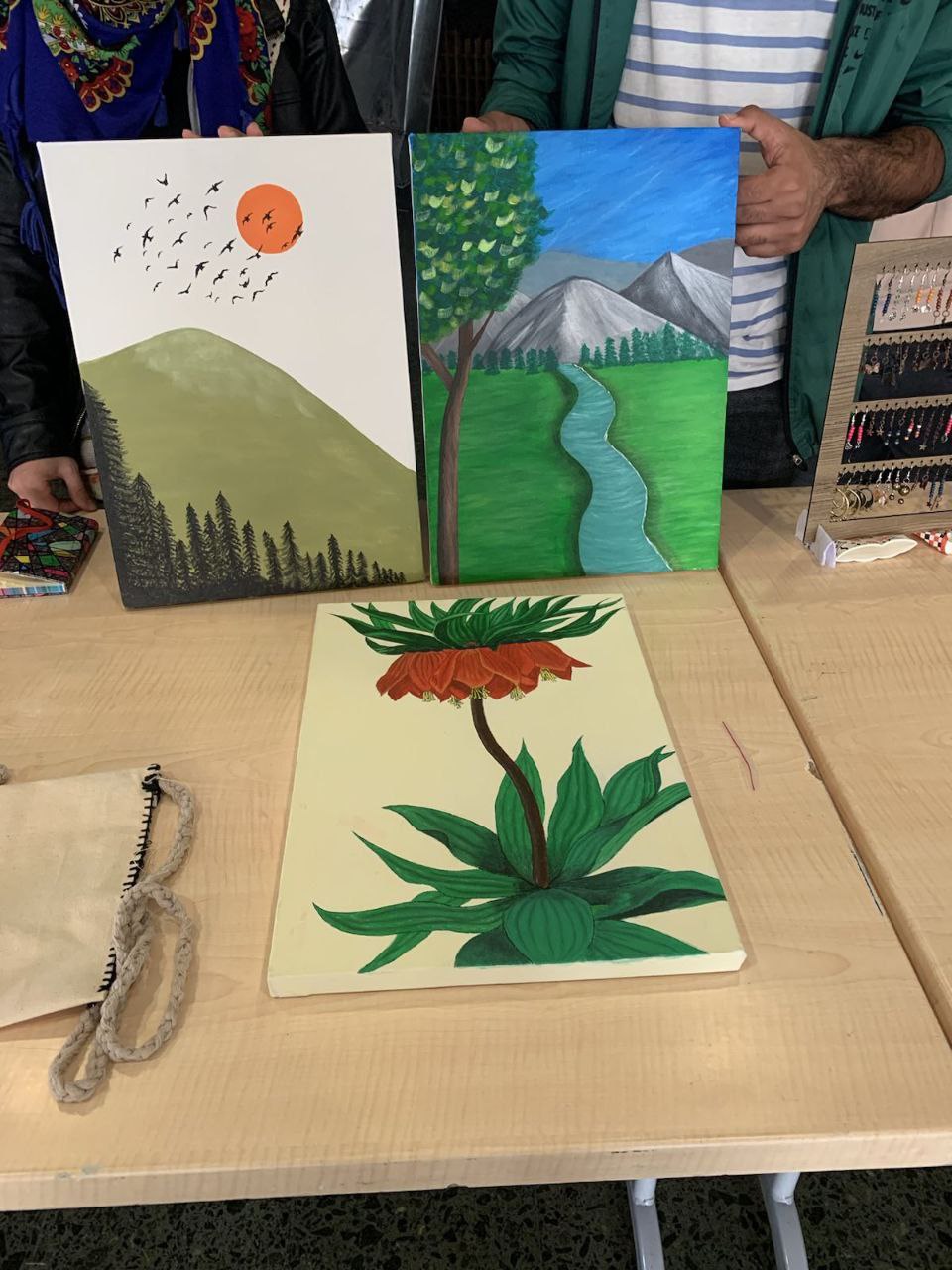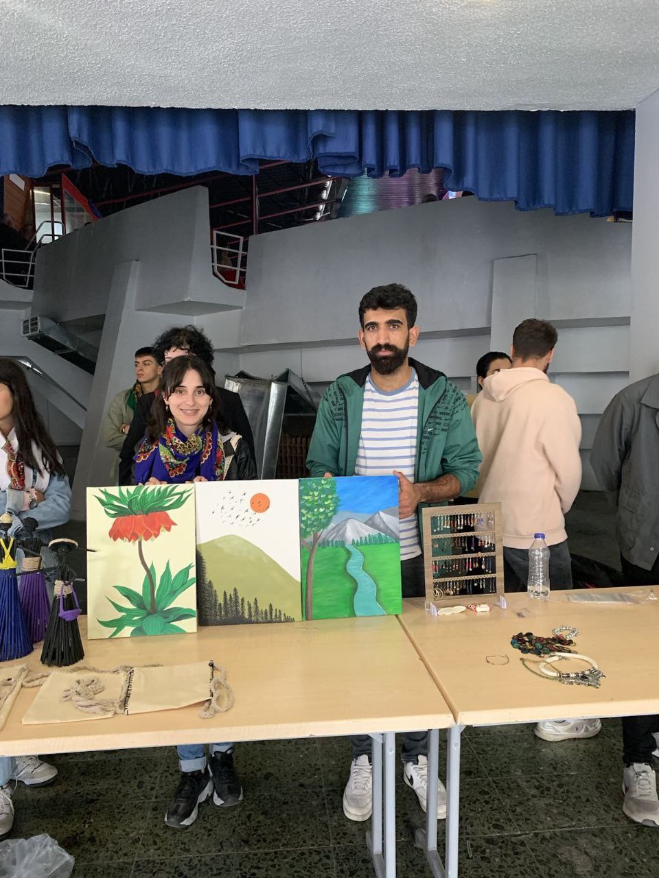 Stantta el yapımı çantalar ve takılar, genç öğrenciler tarafından çizilen resim tabloları ve kitaplar sergilendi. Sergilenen kitaplar arasında Ekolojik Yaşam Dergisinin yanı sıra Karamazov Kardeşler kitabı da yer aldı.
