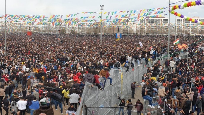 “Kürt halkının sesini kısmak isteyenler yanıldılar. Kürt halkının sesi gün geçtikçe yükseliyor. Kürt siyasetçilere yönelik büyük bir zulüm uygulanıyor. Binlerce Kürt siyasetçi zindanlarda. Zindanlarda da olsa ruhları Amed Newrozu’nda.