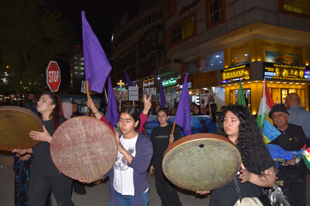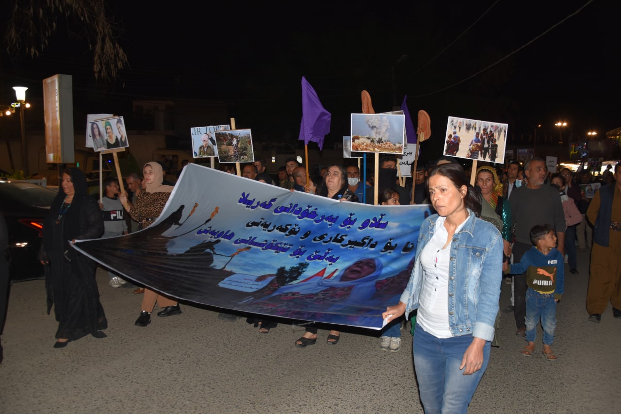 Kadınların öncülük ettiği yürüyüş Salim Caddesinde başladı. Yürüyüşün Emne Sureke adı verilen bölgeye kadar sürmesi bekleniyor. Yürüyüşte Kürdistan gerillalarının işgal karşısındaki direnişini selamlayan pankartlar taşınıyor. Yürüyüşte ayrıca Kürt kadın mücadelesinin öncü şehitlerinin posterleri taşınıyor.