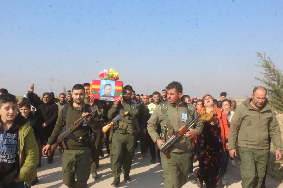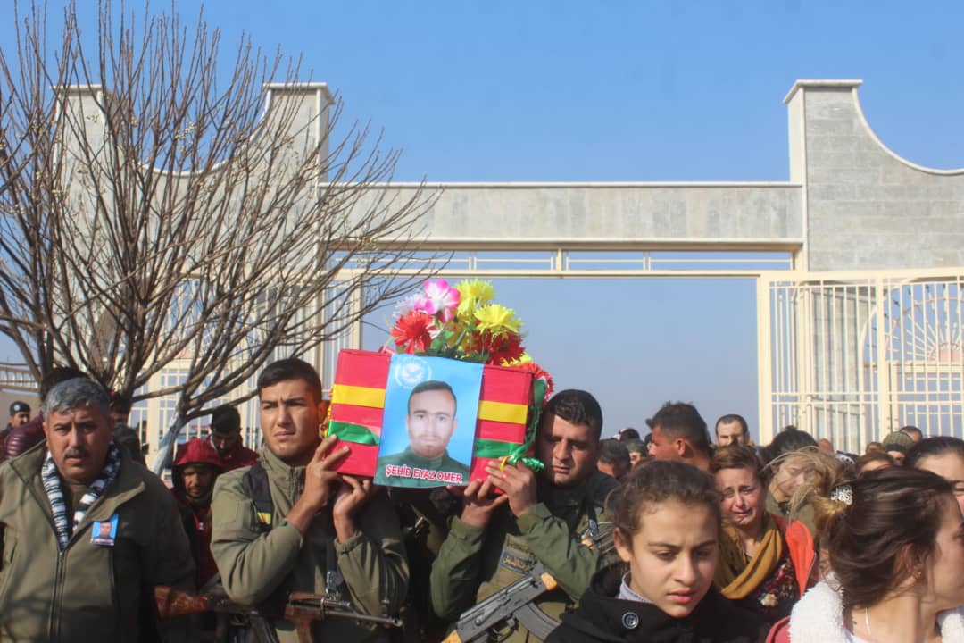 DIRBÊSIYÊ– Görevi başındayken şehit düşen Ayaz Ömer’in cenazesi, Dirbêsiyê’de Şehit Aileleri Meclisi’nden alındı.