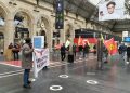 “Tecride, Faşizme, İşgale Son: Bi Hev Re Serhildan” şiarıyla düzenlenen eylem, saat 15’te Paris merkezindeki Gare de l’Est tren istasyonunda başladı.