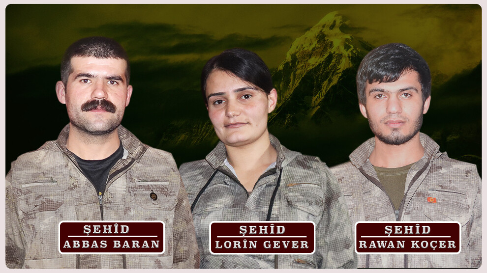 BEHDÎNAN- Şehadete ulaşan 3 gerillanın kimliklerini açıklayan HPG, “Abbas, Lorîn ve Rawan yoldaşlarımızı saygı ve minnetle anıyor, hayallerini özgür Kurdistan’da yaşatacağımızın sözünü bir kez daha yineliyoruz” dedi.