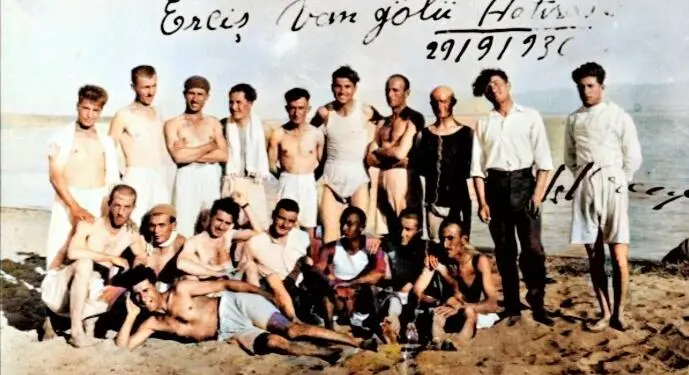 HABER MERKEZİ- Tarihçi Sedat Ulugana, Kürtlere yönelik en büyük katliamlardan biri olan Zîlan Katliamı’nın pek bilinmeyen fotoğraflarını paylaştı. Fotoğraflar arasında askerlerin katliamdan sonra Wan Gölü’ne eğlenmeye gittiği bir ‘hatıra’ fotoğrafı da bulunuyor