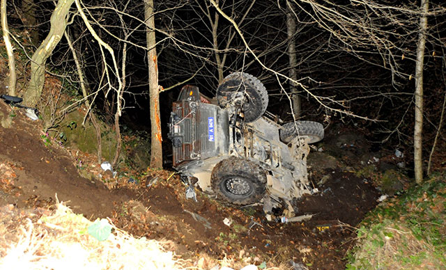 Trabzon’un Tonya ilçesinde, özel harekat polislerini taşıyan kobra tipi zırhlı aracın devrilmesi sonucu 2 polis yaralandı.