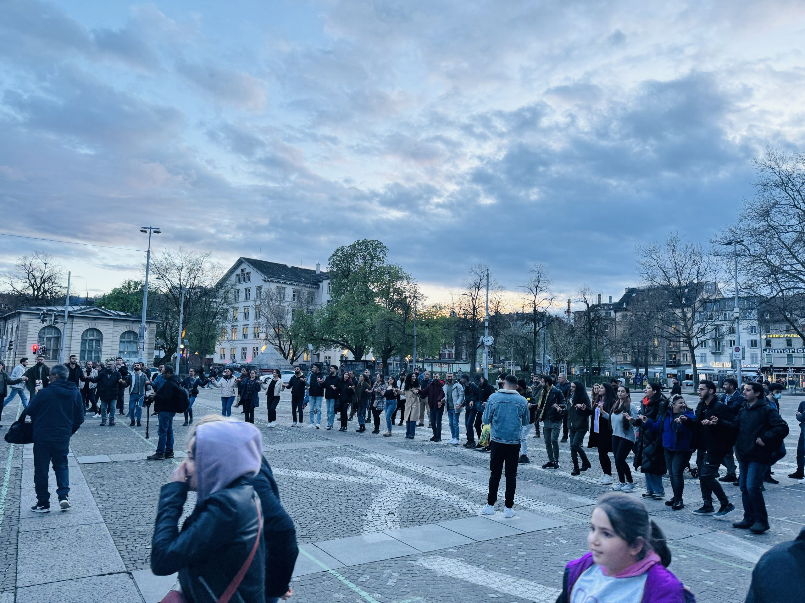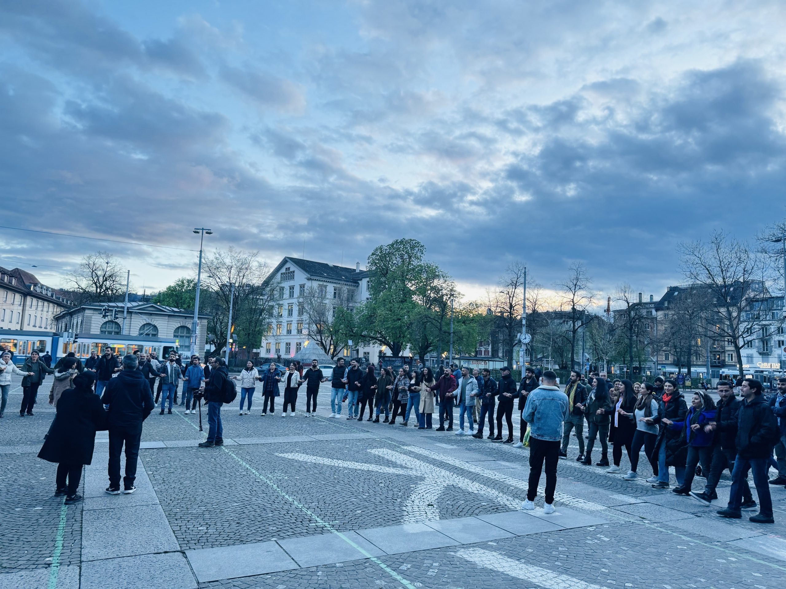 Helvetiaplatz’a gelen kitle burada yapılan konuşmalar sırasında, Kurdistan halkı ve dostlarının direnişiyle, Wan belediyesinin darbe zihniyetinden alınması haberi üzerine kutlamalara geçti.