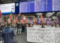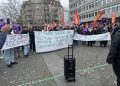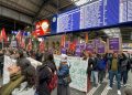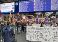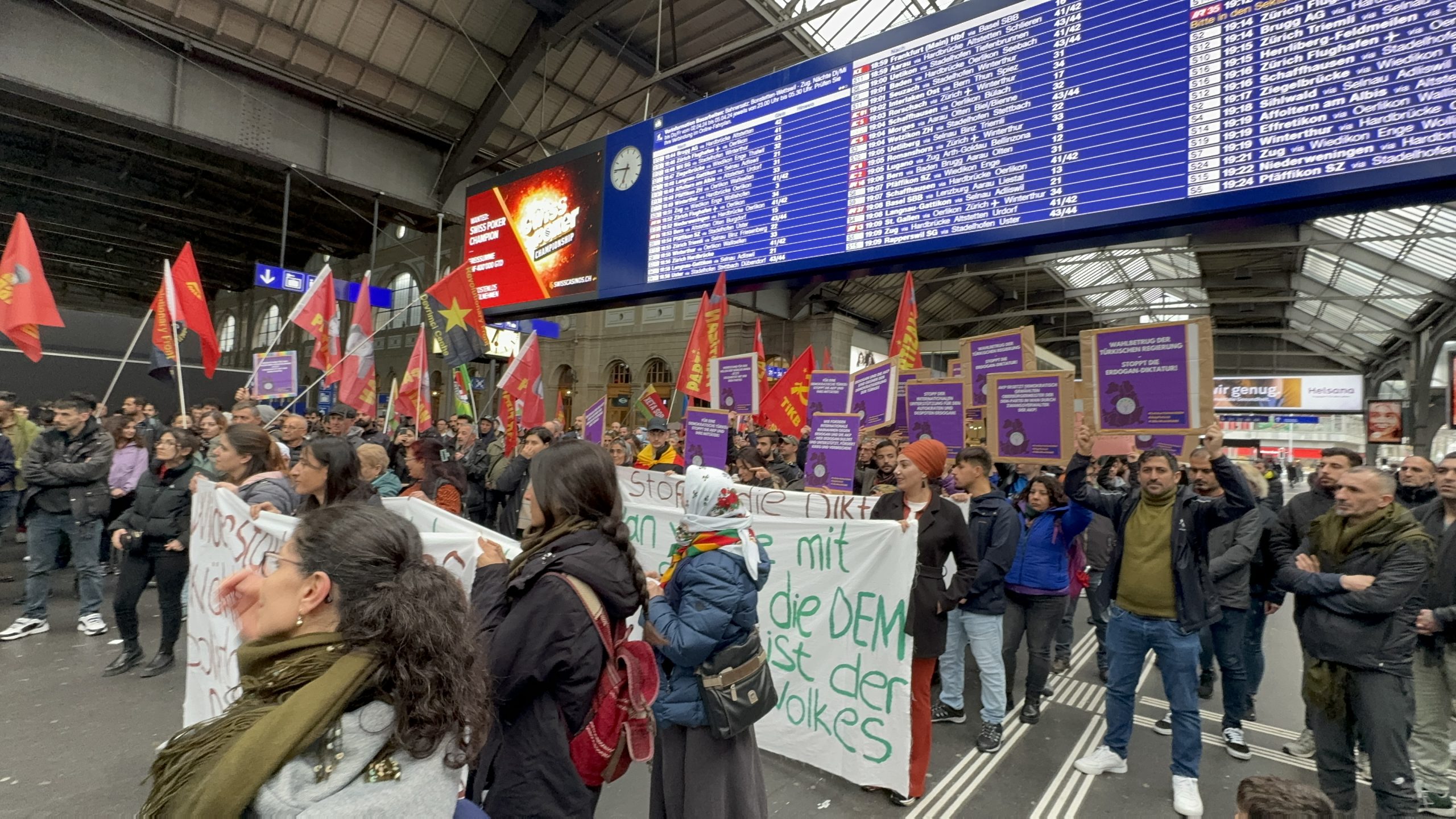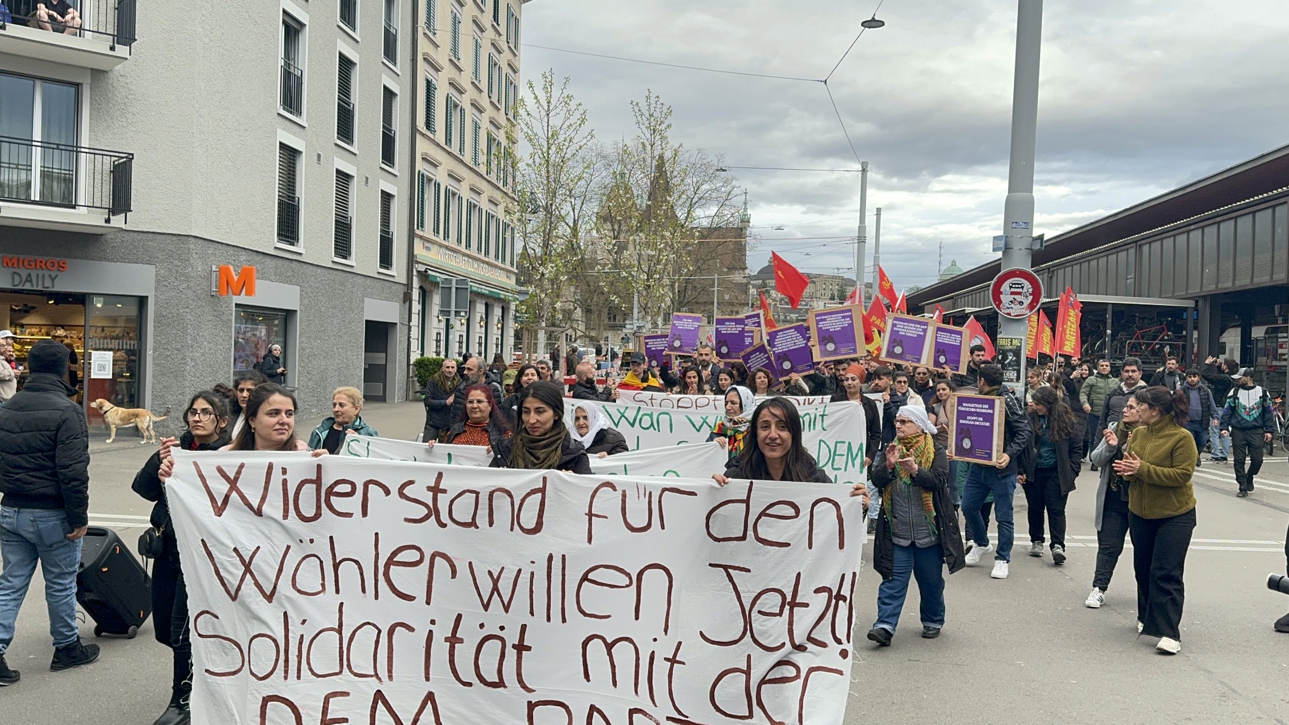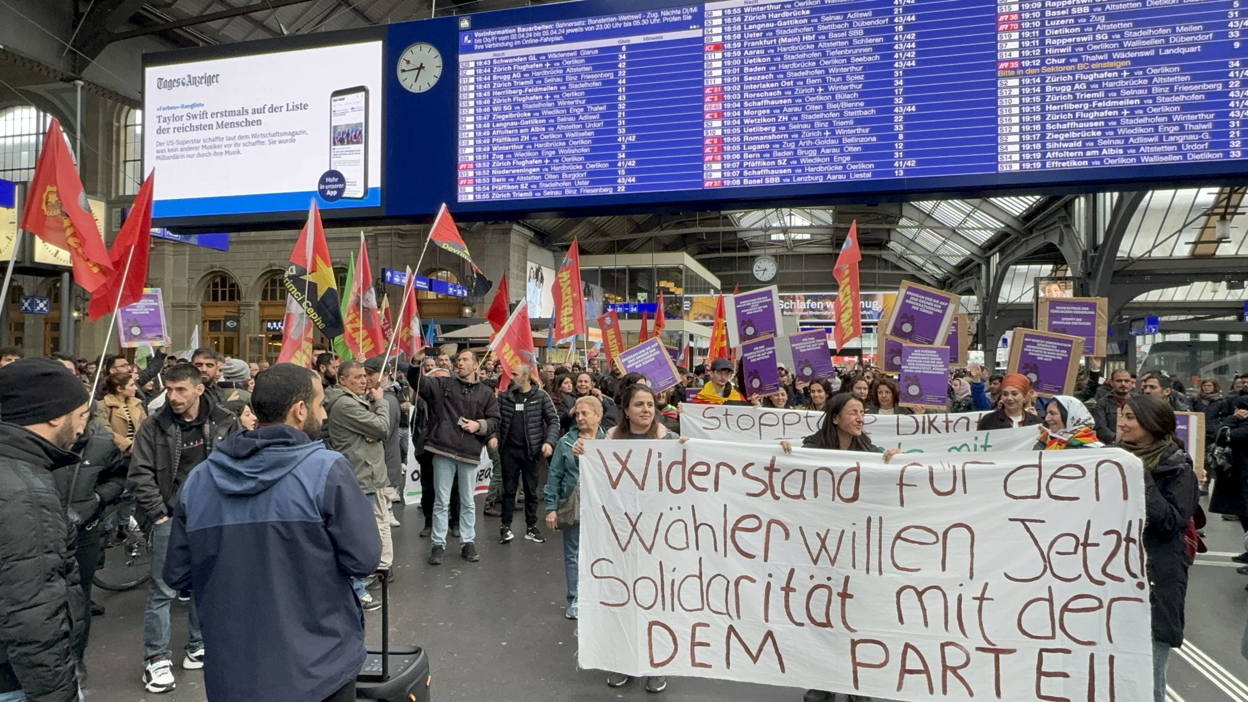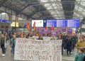 Zürih Tren garında bir araya gelen kitle basın açıklaması okudu.