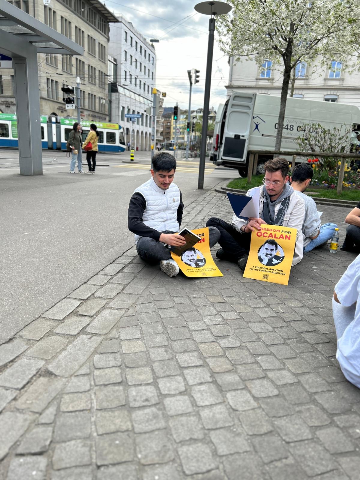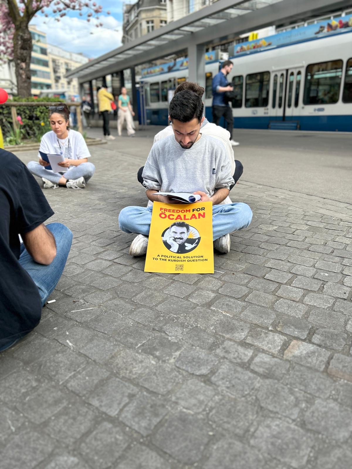 TCŞ ve TekoJIN üyesi gençler İsviçre’nin Zürih kentinde 4 Nisan kutlamaları için, Önder APO’nun kitaplarının olduğu stant açarak, kitap okuma etkinliği gerçekleştirdi.