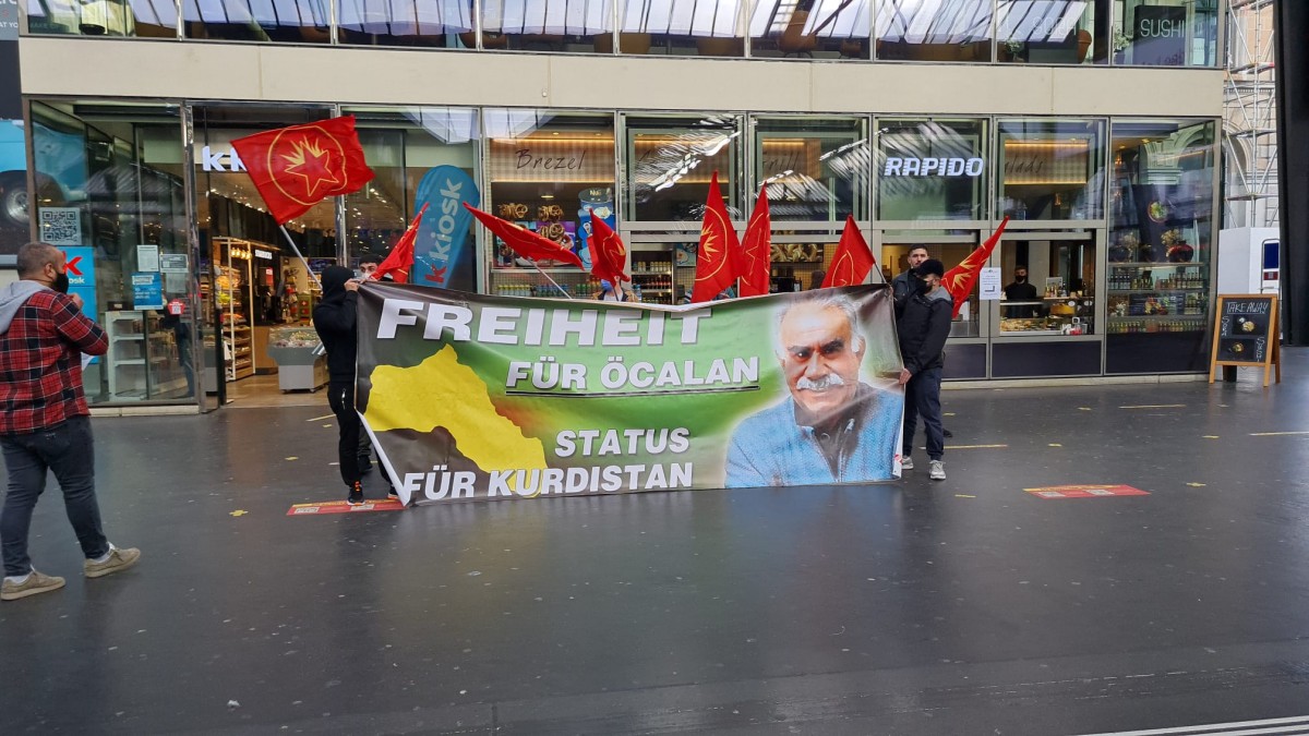 Gerçekleştirilen eylemde Halklar Önderi Abdullah Öcalan’ın fiziki özgürlüğüne ilişkin Almanca bir bildiri dağıtıldı. Eylemde sık sık “Bijî Serok APO” ve “Es Lebe Öcalan” sloganları atıldı.