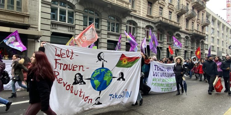 ZÜRİH – 8 Mart’ı kutlamak için dün Zürih şehrinde merkezi bir yürüyüş düzenlendi. Yürüyüşe çok sayıda genç Kürt kadını katıldı. Yürüyüşte Kürt genç kadınları pankart ve sloganlarla renklerini sergiledi. “Jin Jiyan Azadi” sloganı tüm kadınlar arasında yayıldı.