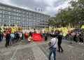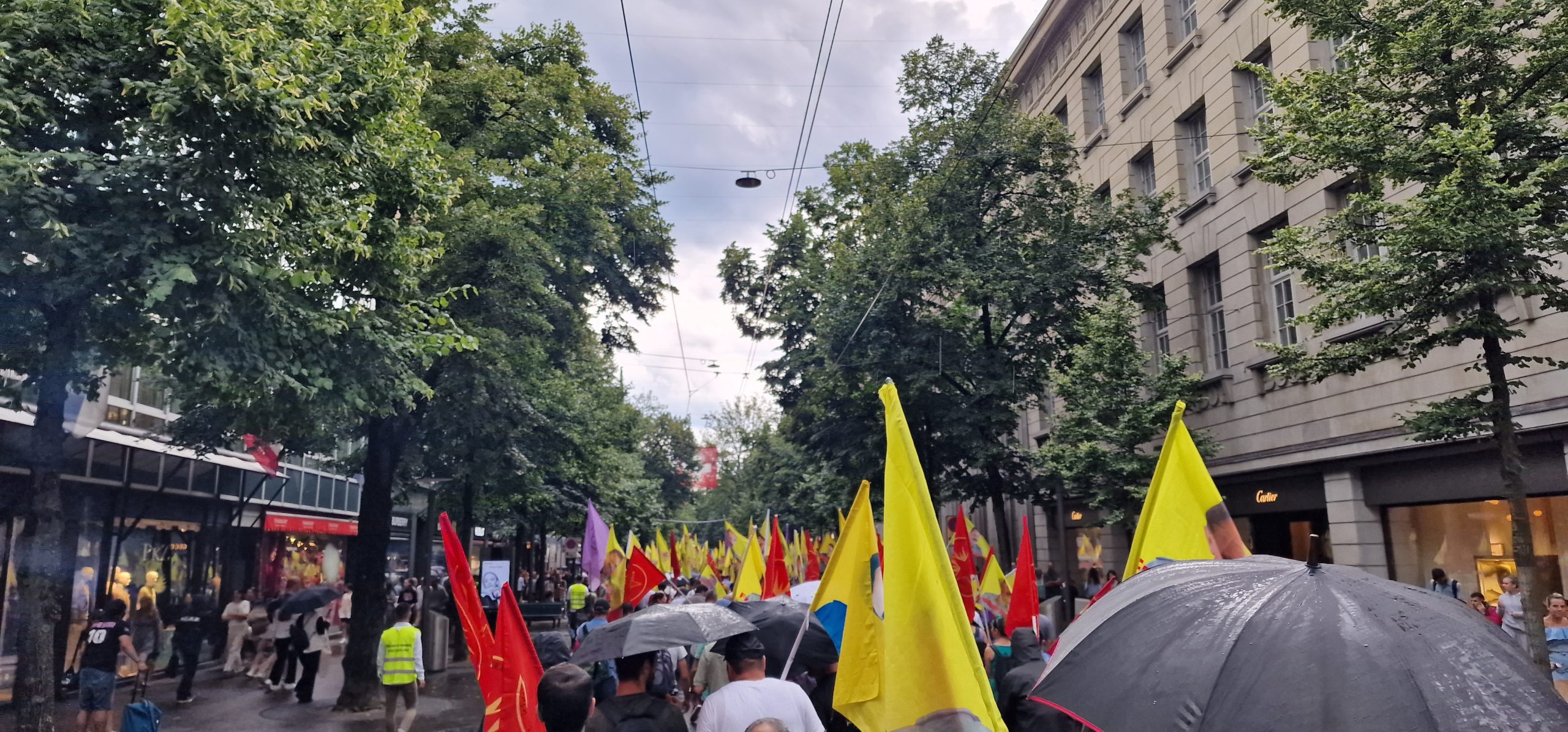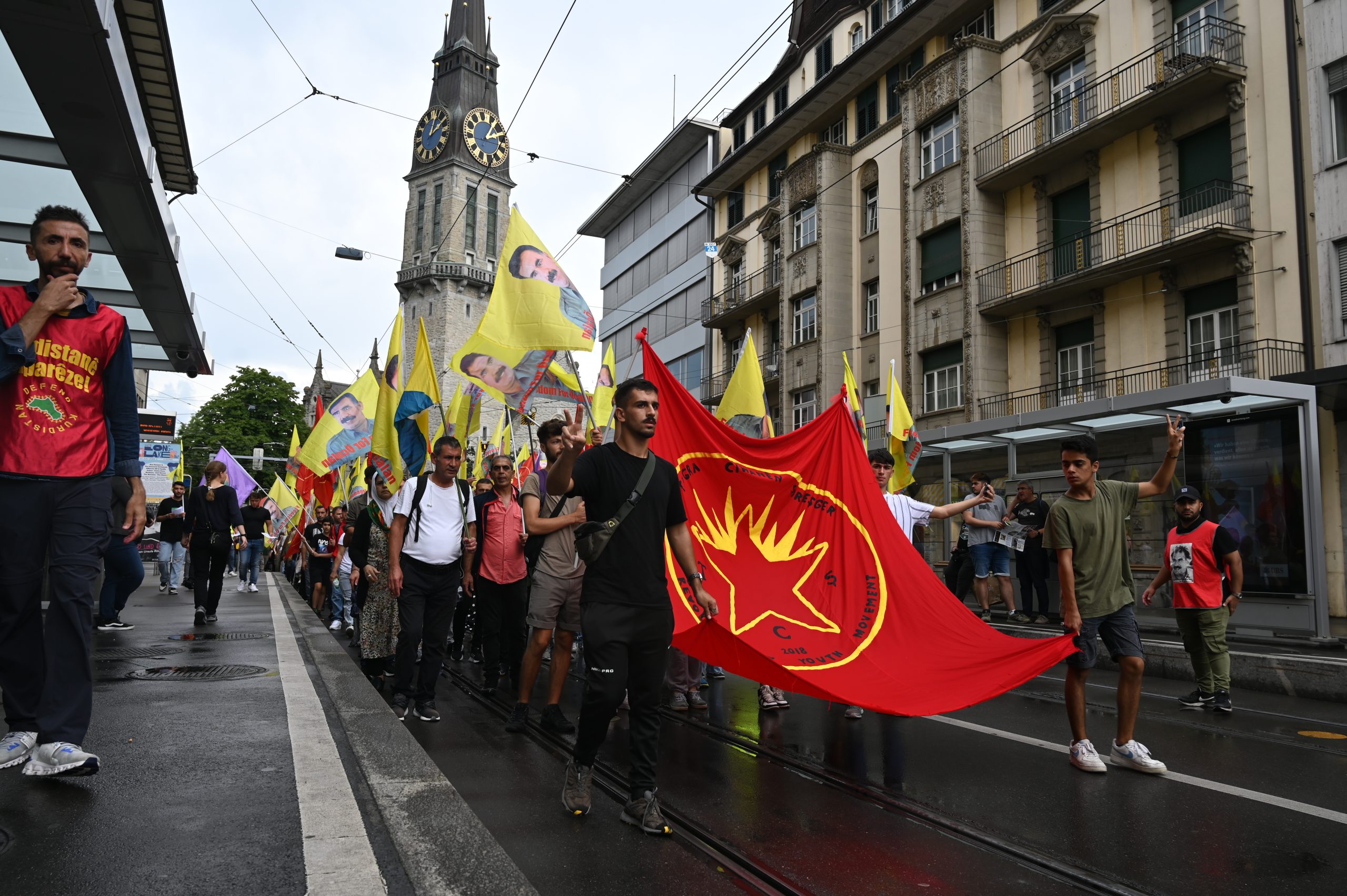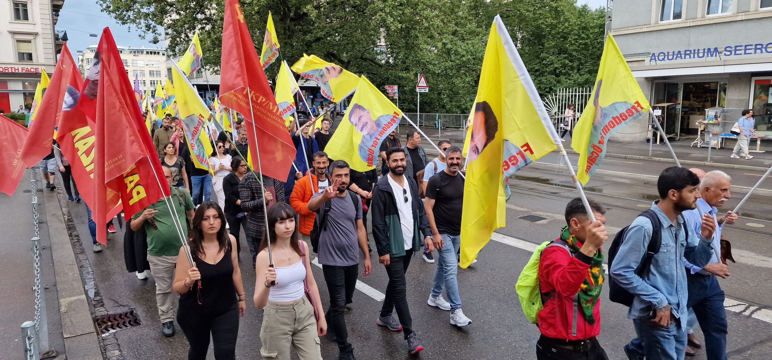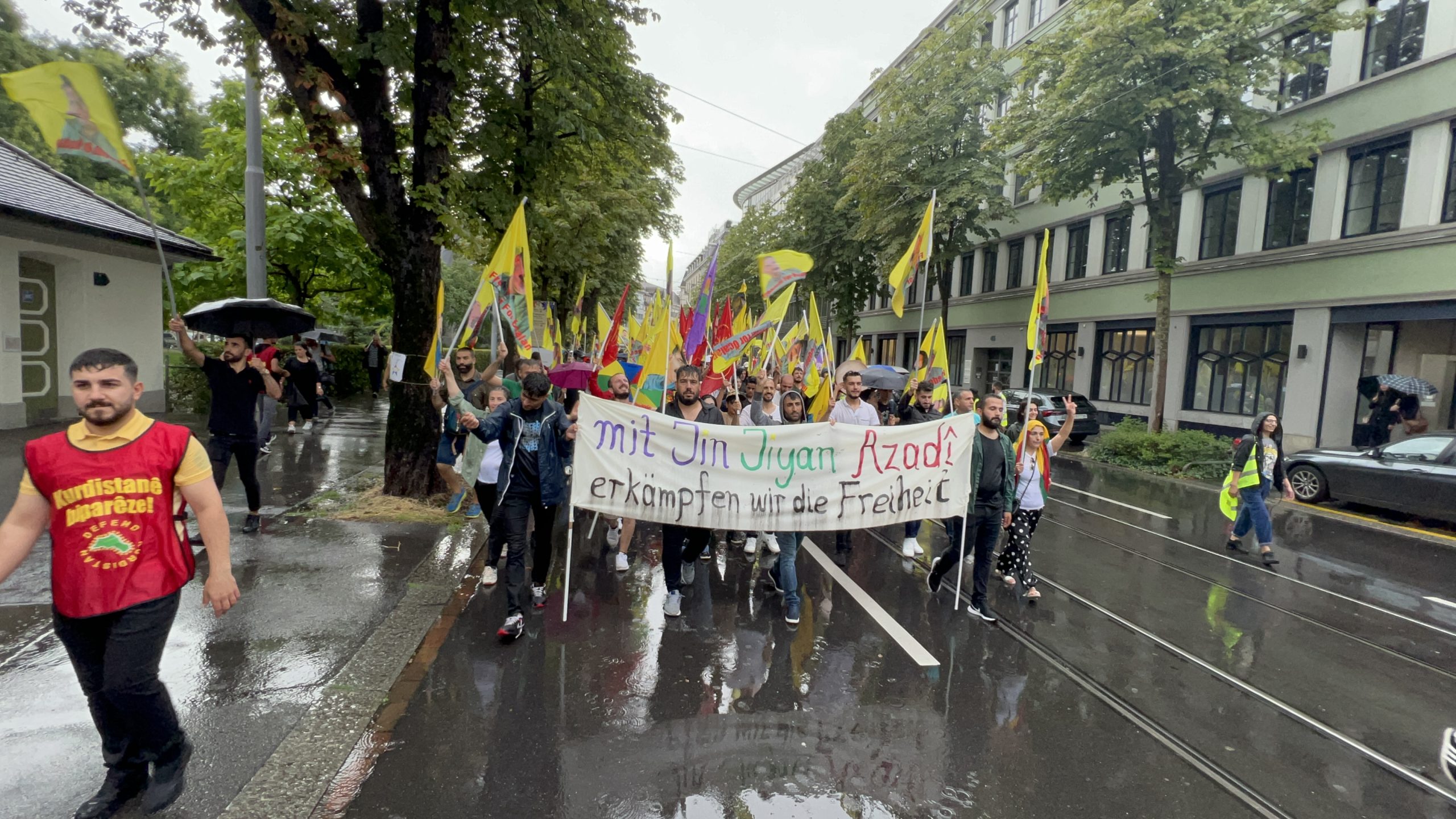ZÜRİH – “Cenga Azadiyê Serbixin” hamlesi kapsamında Tevgera Ciwanên Şoreşger (TCŞ) ve Jinên Ciwan ên Têkoşer (TekoJIN) öncülüğünde Helvetiaplatz’ta düzenlenen yürüyüş öncesi Kurdistan Özgürlük Mücadelesi şehitleri anısına 1 dakikalık saygı duruşu gerçekleştirildi.