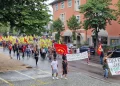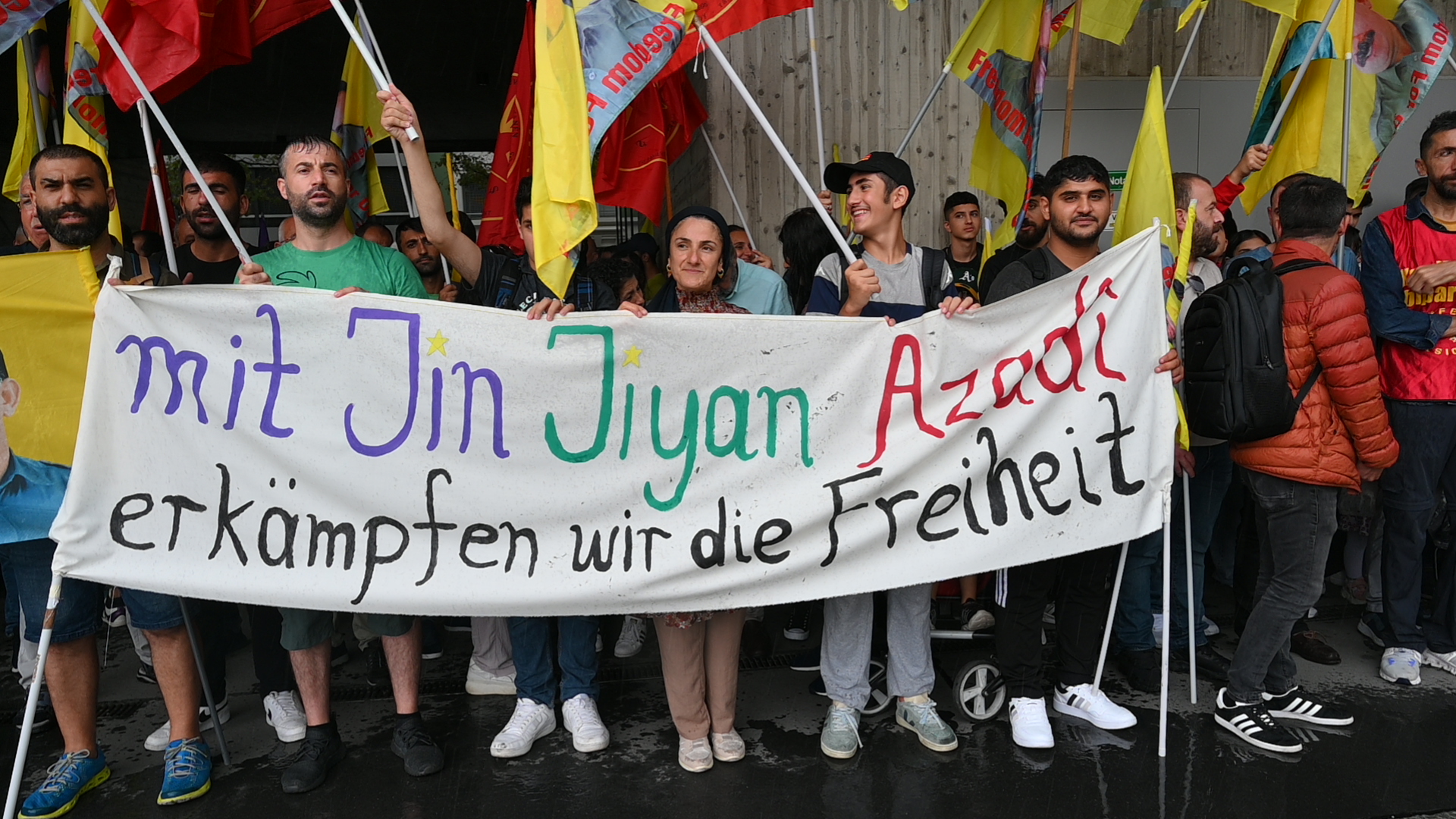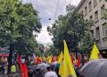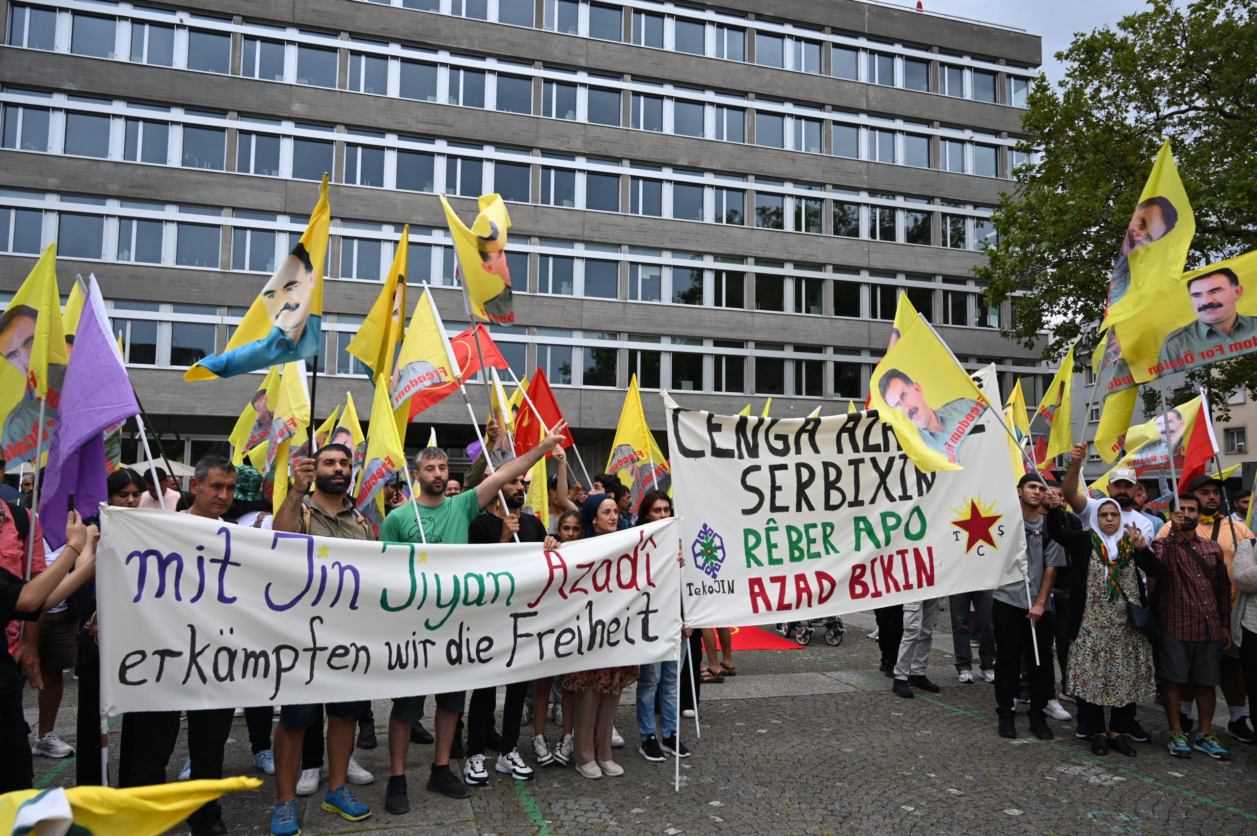 TekoJIN üyesi Yara Amîn tarafından Almanca basın metninin okunması ardından Kurdistanlılar Önder APO’nun özgürlüğünü talep eden sloganlarla kent merkezine doğru yürüyüşe geçti. Yürüyüşün ortalarına doğru bastıran yoğun yağışa rağmen kararlılıkla yürüyüşlerini sürdüren gençler ve Kurdistanlılar kentin önemli merkezlerinde durarak burada tecridin boyutlarına ilişkin açıklamalar yaptı.